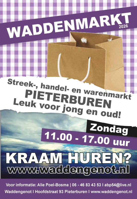 bekijk hier onze arrangementenDe Waddenmarkt in Pieterburen wordt in het hoogseizoen iedere zondag gehouden en in het voor- en najaar 1x in de 2 weken op zondag.
